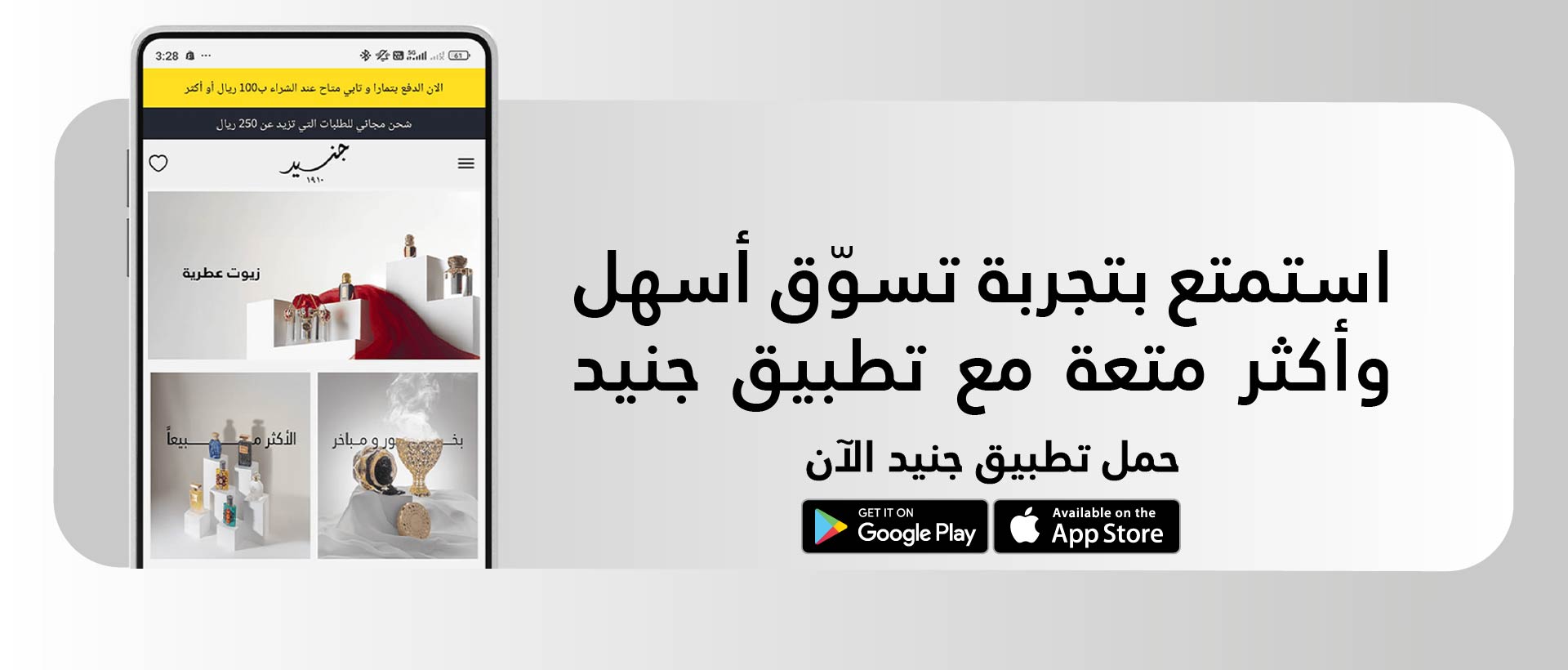 عود جنيد هو عطر ترابي شرقي ذو جودة عالية تنبعث منه رائحة جميلة ومفعمة بالحيوية .. لتخلق أجواء جذابة وتمد صاحبها بالثقة العالية